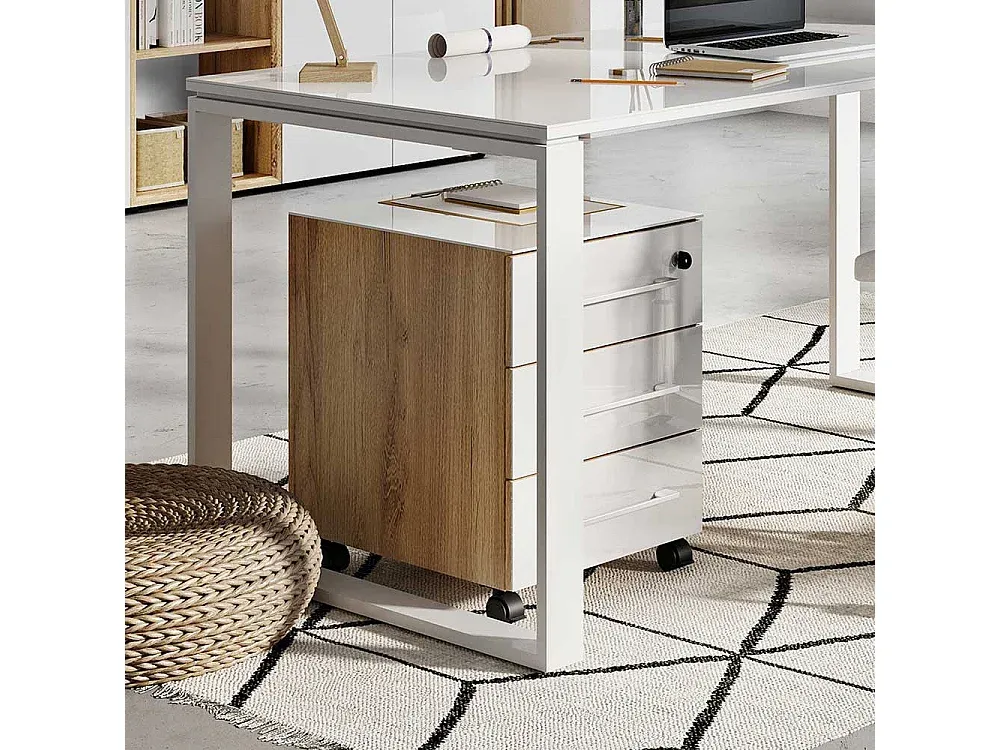 Moderner Rollcontainer Weiß mit Wildeiche-Optik