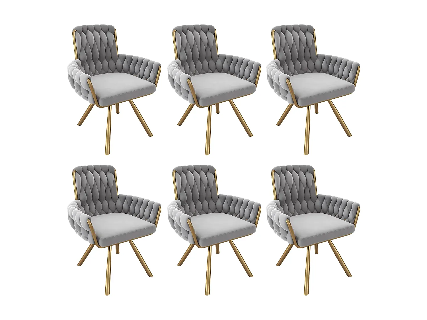 Set aus 6 Drehsesseln mit Samtbezug und Metallgestell, Grau, 63x50x87 cm