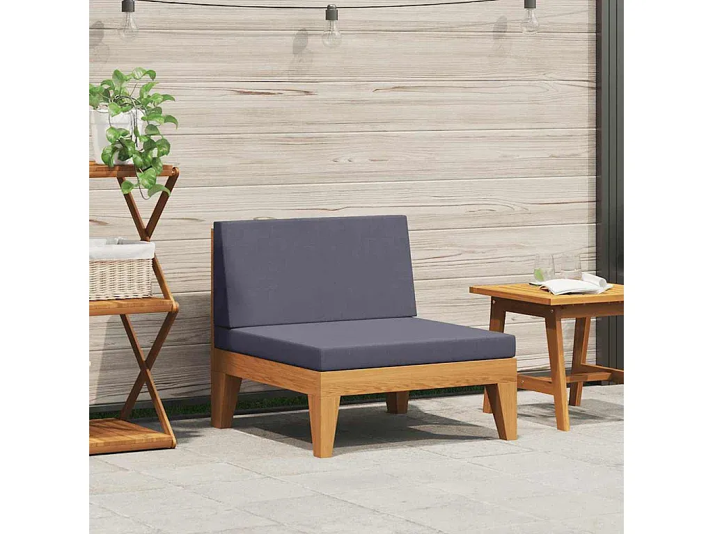 Verstellbares Sofa mit dunkelgrauen Kissen aus massivem Akazienholz