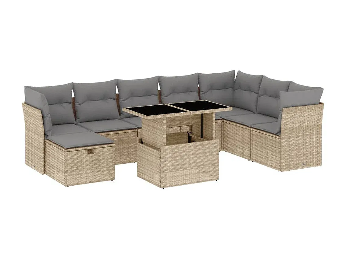 Garten-Set mit Kissen aus Poly Rattan in Beige
