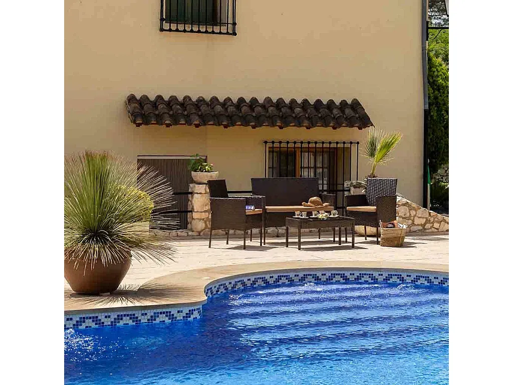 Hölzerne Garten-Sitzgruppe mit Sofa und Tisch