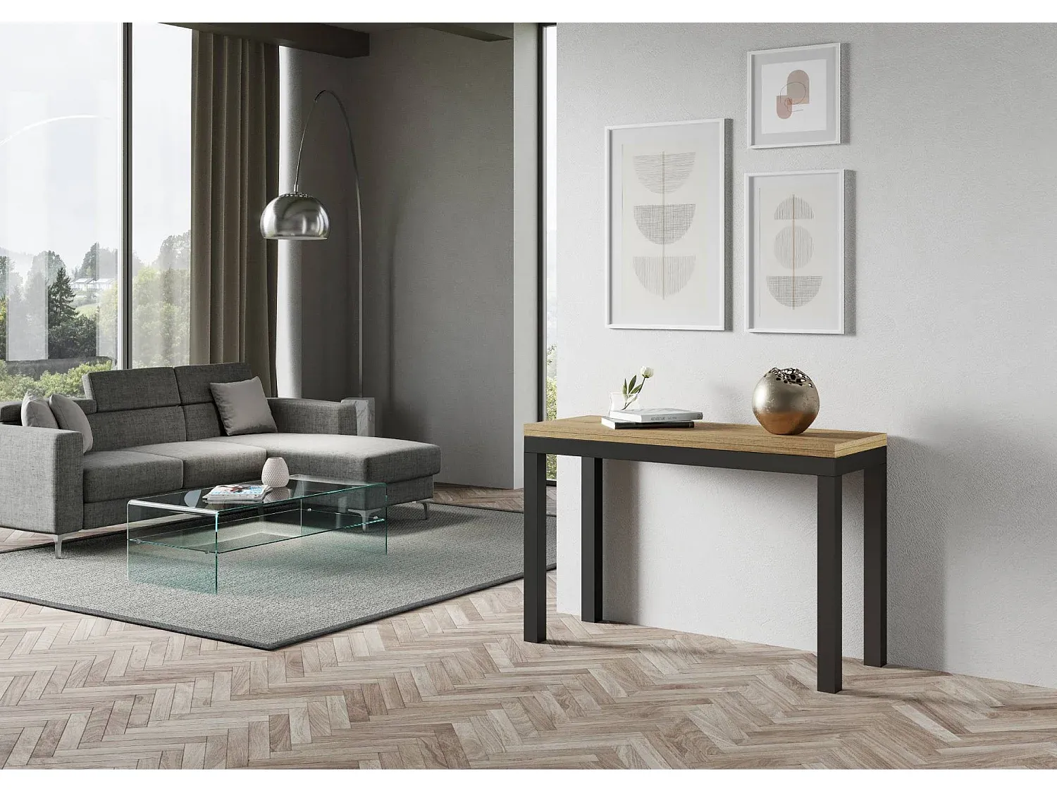 Dieser klappbare Tisch bietet flexible Nutzungsmöglichkeiten für verschiedene Anlässe, ob im Alltag oder bei geselligen Zusammenkünften. Die Tischfläche kann von 120 cm auf bis zu 200 cm erweitert werden und bietet Platz für bis zu 10 Personen. Er besteht aus melaminbeschichteten Spanplatten mit einem Rahmen und Beinen aus Metall. Der Klappmechanismus ermöglicht eine einfache Anpassung der Tischgröße, jedoch muss die Verlängerungsplatte separat aufbewahrt werden.