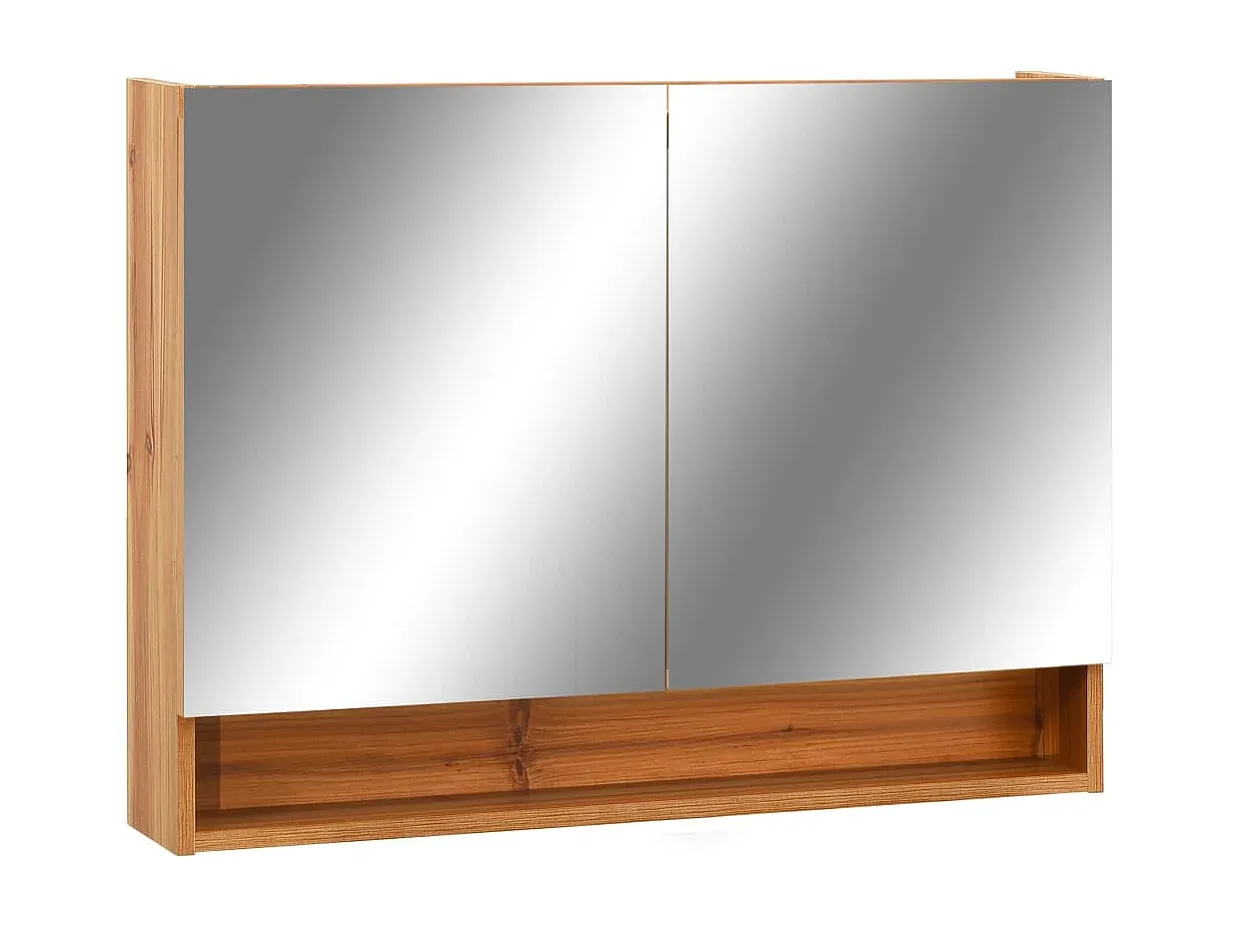 Dieser LED-Kosmetikspiegelschrank bringt modernes Design und funktionale Beleuchtung in Ihr Badezimmer. Er besteht aus MDF mit Melamin-Beschichtung und bietet mit 2 Türen und 3 Einlegeböden ausreichend Stauraum für Toilettenartikel. Der Schrank verfügt über eine LED-Leiste, die einfach per Knopfdruck bedient werden kann. Eine bewegliche Trennwand ermöglicht flexible Nutzung des Innenraums. Der Schrank lässt sich mit einem feuchten Tuch leicht reinigen. Farbe: Eichenbraun und Silbern Material: MDF, Glas Gesamtabmessungen: 80 x 15 x 60 cm (B x T x H)