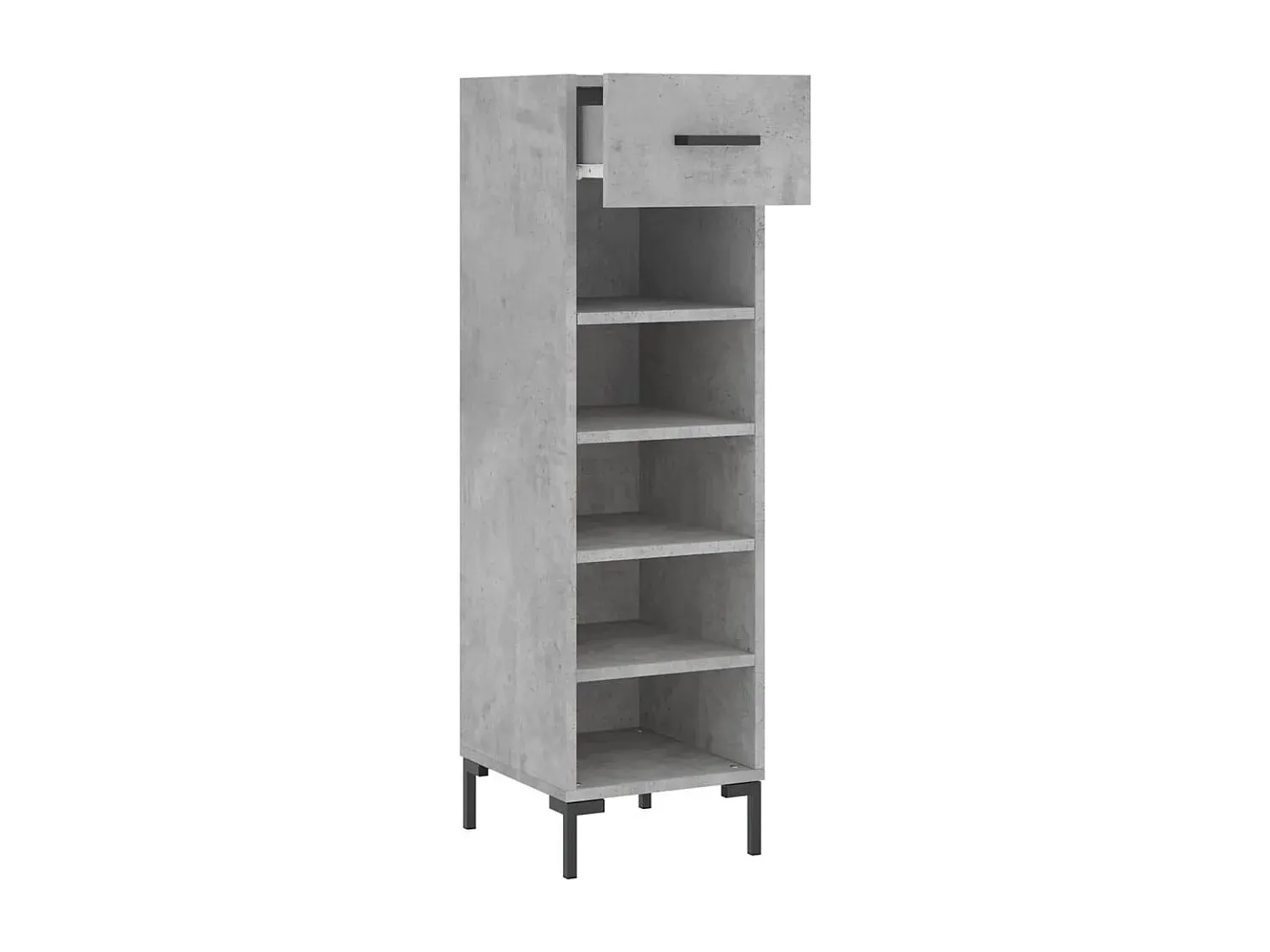 Dieser Schuhschrank bietet praktischen Stauraum in deinem Zuhause. Das Material aus Holzwerkstoff und Eisen sorgt für Stabilität und Feuchtigkeitsbeständigkeit. Mit einer Schublade und fünf offenen Fächern findest du ausreichend Platz für verschiedene Schuhe. Die Oberplatte eignet sich zur Platzierung von Dekorationen. Die Eisenfüße verleihen dem Möbelstück einen industriellen Stil. Achtung: Zur Sicherheit sollte der Schrank an der Wand befestigt werden. Farbe: Grau. Material: Holzwerkstoff, Eisen. Abmessungen: 30 x 35 x 105 cm. Zusammenbau erforderlich.